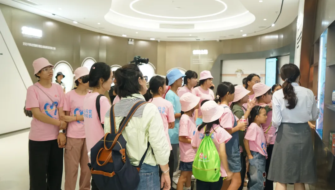 活动一开始,孩子们便迫不及待地踏入了人生就是博药业集团的大厅。3D数字化看板上的生动画面,让孩子们仿佛置身于一个充满科技与创新的现代制药工厂。他们瞪大眼睛,好奇地观察着每一条生产线、每一台设备,听着讲解员介绍人生就是博药业的儿药发展历程。